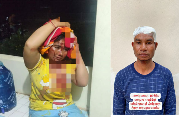 បន្ទាយមានជ័យ ៖ បុរសម្នាក់ ក្រោយពីផឹកស្រាស្រវឹងធ្លាក់ភ្នែក ក៏រករឿងគំរាមសម្លាប់ប្រពន្ធខ្លួនឯង រួចក៏ទាញ ដែកបំពង់ទីបវាយ សំពងប្រពន្ធចំនួន៥បំពង់ទីបបណ្តាលឱ្យរយះក្បាលរងរបួសយ៉ាងធ្ងន់ លុះស្ត្រីជាប្រពន្ធស្រ វាបានពូថៅមកគ្រវាសការពារខ្លួន បណ្តាលឱ្យចំក្បាលប្តី បែករយះក្បាលរងរបួសយ៉ាងដំណំដូចគ្នា ទីបំផុតក៏ត្រូវ សមត្ថកិច្ចចុះអន្តរាគមន៍ចាប់វាយខ្នោះបុរសជាប្តីកំណាច យកទៅចាត់ការតាមច្បាប់។