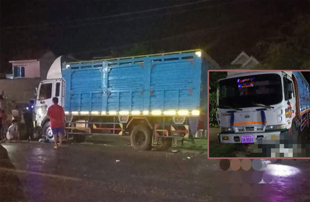 បាត់ដំបង ៖ បុរសម្នាក់ កំពុងជិះម៉ូតូតាមផ្លូវ ក្នុងល្បឿនលឿន លុះមានសត្វឆ្មា ១ក្បាល រត់កាត់ ក៏បុកឆ្មា បណ្តាលឱ្យដួលម៉ូតូ ខ្ទាតមនុស្សចូលក្រោមកង់រថយន្តធុនធំ ១គ្រឿង ដែលកំពុងបើកបរបញ្ច្រាសទិសគ្នា បណ្តាលឱ្យរថយន្តកិនចំក្បាល បែកខ្ទេចក្បាល ស្លាប់នៅនឹង កន្លែងយ៉ាងអាណោចអាធ័ម ចំណែកអ្នក បើកបររថយន្ត បានចុះរត់គេចខ្លួនបាត់ បន្សល់ទុកប្រពន្ធកូន និងរថយន្ត នៅនឹងកន្លែង។