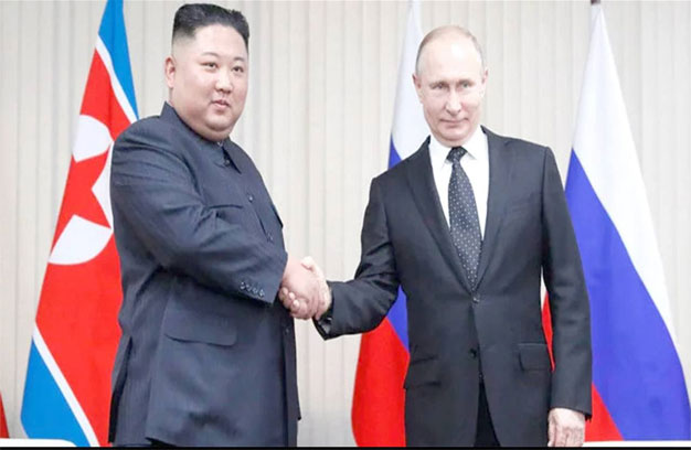 យោងតាមទីភ្នាក់ងារសារព័ត៌មានរដ្ឋកូរ៉េខាងជើង KCNA ចេញផ្សាយកាលពីថ្ងៃចន្ទ ទី១២ ខែមិថុនា ឆ្នាំ២០២៣ បានឲ្យដឹងថាមេដឹកនាំកូរ៉េខាងជើង លោកគីម ជុងអ៊ុន បានប្រកាសកប្តេជ្ញាកៀកស្មាជាមួយប្រធានាធិបតីរុស្ស៊ីលោក វ្ល៉ាឌីមៀ ពូទីន ក្នុងការជំរុញកិច្ចសហប្រតិបត្តិការយុទ្ធសាស្ត្រលើគោលដៅរួមគ្នារបស់ប្រទេសទាំងពីរ។