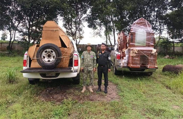 ព្រះវិហារ ៖ កម្លាំងត្រួតពិនិត្យតាមគោលដៅព្រំប្រទល់ បានឃាត់បានរថយន្តទំនើប ចំនួន២គ្រឿង ដឹកសិប្ប កម្មកែច្នៃអត់ច្បាប់ ដោយក្នុងនោះរថយន្ត ១គ្រឿង មានដឹកមឈូស ពីខាងលើ តែបង្កប់ឈើមួយចំនួននៅពី ក្រោម ដើម្បីបន្លំបំភាន់ភ្នែកសមត្ថកិច្ច និងមន្ត្រីជំនាញ។