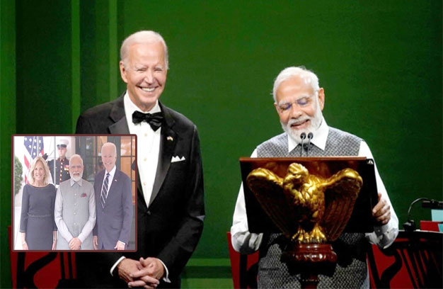 លោក បៃដិនបានប្រាប់លោក ម៉ូឌីក្នុងពិធីជប់លៀងនៅអាហារពេលល្ងាចថាពិតជារីករាយណាស់សម្រាប់ប្រជាជាតិដ៏អស្ចារ្យពីរ មិត្តដ៏អស្ចារ្យពីរ និងមហាអំណាចពីរ។ ចំណែកឯលោកម៉ូឌីវិញបានឆ្លើយតបថាអ្នកជាមនុស្សនិយាយទន់ភ្លន់ ប៉ុន្តែពេលនិយាយដល់សកម្មភាព អ្នកខ្លាំងណាស់។