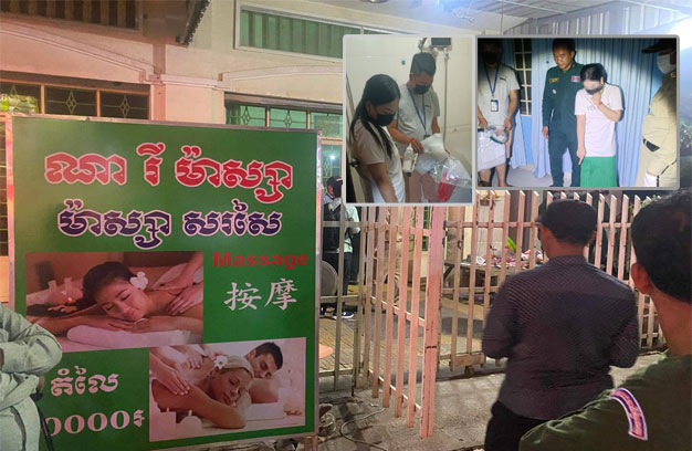 ភ្នំពេញ ៖ សមត្ថកិច្ចនគរបាលនៃការិយាល័យជួញដូរមនុស្សនិងការពារអនីតិជន បានសហការជាមួយ អា ជ្ញាធរសង្កាត់ចោមចៅទី៣ ចុះត្រួតពិនិត្យទីតាំងម៉ាស្សា កោសជប់មួយកន្លែង ប្រទះឃើញស្រោមអនា ម័យមួយចំនួន ដោយមានទាំងប្រើរួច និងមិនទាន់ប្រើ ទើបសង្ស័យ ជាទីតាំងបង្កប់សេវាផ្លូវភេទ ក៏សម្រេច ឃាត់ខ្លួនម្ចាស់ផ្ទះនិងក្មួយ ចំនួន៣នាក់ ព្រមទាំងនារីបម្រើសេវាផ្លូវភេទ ចំនួន៣នាក់ផងដែរ។ប្រតិបត្តិការខាងលើនេះ បានធ្វើឡើងកាលពីវេលាម៉ោង៨យប់ ថ្ងៃទី១០ ខែកក្កដា ឆ្នាំ២០២៣ នៅត្រង់ចំណុចហាង ម៉ាស្សា ណារី ម៉ាស្សា មានទីតាំងស្ថិតនៅបុរីញូវថោន ក្នុងភូមិព្រៃទា១ សង្កាត់ចោមចៅទី៣ ខណ្ឌពោធិ៍សែន ជ័យ ។