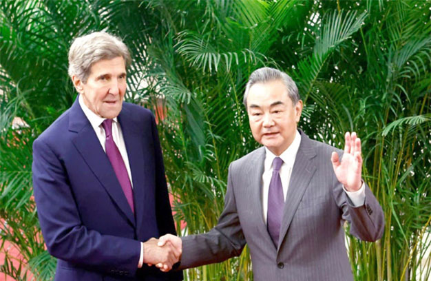 លោក Kerry បានប្រាប់លោក Wang ថា អាកាសធាតុ ដូចដែលអ្នកដឹងហើយ គឺជាបញ្ហាសកល មិនមែនជាបញ្ហាទ្វេភាគីនោះទេ។វាជាការគំរាមកំហែងដល់មនុស្សជាតិទាំងអស់។លោកបានសង្កត់ធ្ងន់ថានេះគឺជាបញ្ហានៃភាពជាអ្នកដឹកនាំសកលលោកដោយបន្ថែមថាពិភពលោក ពិតជាសង្ឃឹមសម្រាប់រឿងនោះ ហើយត្រូវការវា។