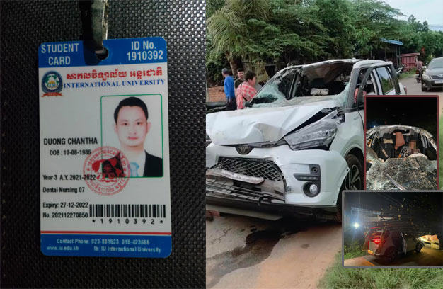 ពោធិ៍សាត់ ៖ បុរសជាទន្តពេទ្យម្នាក់ បានបើករថយន្ត ១គ្រឿង ជ្រុលទៅបុកពីក្រោយរថយន្ត១គ្រឿងទៀត ដែលមានដឹកដើមឬស្សី ពេញរថយន្ត បណ្តាលឱ្យជង់ស្លាប់នៅនឹងកន្លែងយ៉ាងអាណោចអាធ័ម។ហេតុការណ៍ គ្រោះថ្នាក់ចរាចរណ៍ដ៏រន្ធត់ខាងលើ បានកើតឡើងកាលពីវេលាទៀបភ្លឺ ថ្ងៃទី២៥ ខែកក្កដា ឆ្នាំ២០២៣ នៅលើកំ ណាត់ផ្លូវ កៅស៊ូ (ផ្សារក្រគរ ចុះទៅបឹងទន្លេសាប) ស្ថិតក្នុងភូមិទី៤ ឃុំកំពង់លួង ស្រុកក្រគរ។