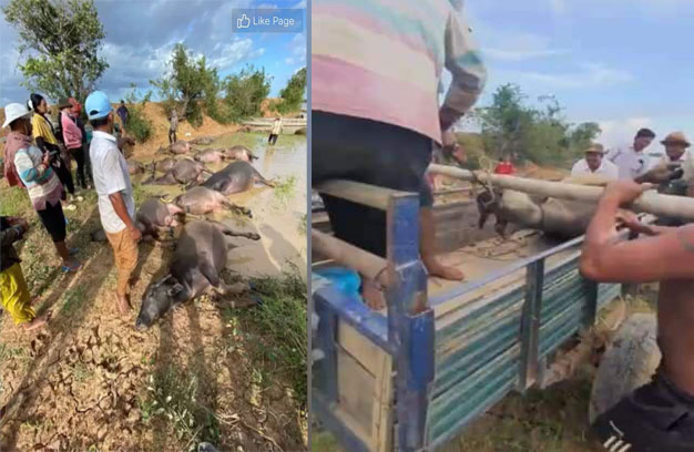 កំពង់ចាម ៖ សត្វក្របី ចំនួន ១៧ក្បាល បានផ្អើលជាន់គ្នា លង់ទឹកងាប់ ដោយសារកំពុងហែលទឹកឆ្លងព្រែក ឃើញទូករបស់ម្ចាស់វា មានរាងដូចក្រពើ កាលពីថ្ងៃទី០៦ ខែសីហា ឆ្នាំ២០២៣ វេលាម៉ោង ១៧:៣០នាទី នៅ ក្នុងឃុំផ្តៅជុំ ស្រុកជើងព្រៃ ខេត្តកំពង់ចាម។