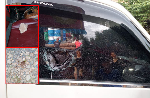 ពាក្យបណ្តឹងខាងលើ បន្តថា ក្រោយពេលកើតហេតុ ភាគីទាំងសងខាងបានបញ្ចប់រឿង ដោយភាគីខាងម៉ូតូ ចេញសងថ្លៃខូចខាតទៅម្ចាស់រថយន្ត ចំនួន៣០ម៉ឺនរៀល ហើយក្រោយសម្រួលគ្នារួចរាល់នៅកន្លែងកើតហេតុ ម្ចាស់រថយន្តបានធ្វើដំណើរបន្តទៅមុខទៀត។ លុះដល់មុខផ្ទះឈ្មោះគ្រី ចំណុចផ្លូវកែង ស្ថិតក្នុងភូមិស្វាយស្រ ណោះទី២ ឃុំរកាអារ ស្រុកកងមាស ស្រាប់តែមានឈ្មោះញឹម ភារ៉ា ហៅប៉ារ៉ា ភេទប្រុស អាយុ២៦ឆ្នាំ មានលំនៅ ភូមិរកាអារ ឃុំរកាអារ ស្រុកកងមាស ដែលត្រូវជាមិត្តភក្តិរបស់ម្ចាស់ម៉ូតូឈ្មោះឡូត ប៊ុនឡុង បានយកដុំ ថ្មគប់ មកលើ កញ្ចក់រថយន្តខាងមុខ ចំហៀងខាងស្តាំ បណ្តាលឱ្យបែកកញ្ចក់រថយន្តខាងស្តាំ និងធ្លាយកញ្ចក់ឡាន ត្រូវថ្ពាល់ខាងស្តាំរបស់ឈ្មោះប៉ុន គីមស្រេង ភេទស្រី អាយុ២៣ឆ្នាំ ដែលត្រូវជាប្រពន្ធរបស់ឈ្មោះ ស៊្រន ស៊ូហាន ជាម្ចាស់រថយន្ត។ សកម្មភាពនេះបណ្តាលឱ្យរបួសមនុស្សស្រី ១នាក់ កម្រិតស្រាល។