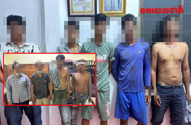 លោកអធិការខណ្ឌឫស្សីកែវ បានបបន្តថា ជនសង្ស័យទាំង៩នាក់ ដែលត្រូវបានឃាត់ខ្លួន មានចំនួន២ក្រុម រួម មាន ក្រុមទី១ មានគ្នា៦នាក់ ១-ឈ្មោះលឹម វឹកដក ភេទប្រុស អាយុ៣០ឆ្នាំ ជនជាតិវៀតណាម មុខរបរកម្មករ (ពុំរងរបួស) ឃាត់ខ្លួន។ ទី២-ឈ្មោះឃូ ខិន ភេទប្រុស អាយុ៤៣ឆ្នាំ ជនជាតខ្មែរ (ពុំរងរបួស) ឃាត់ខ្លួន។ ទី៣-ឈ្មោះសុខ ហុង ភេទប្រុស អាយុ៣០ឆ្នាំ ជនជាតិវៀតណាម មុខរបរលក់ត្រី (រងរបួសស្រាល) ឃាត់ខ្លួន។ ទី៤-ឈ្មោះលី ហួ ភេទប្រុស អាយុ១៨ឆ្នាំ មុខរបរកម្មករ (ពុំរងរបួស) ឃាត់ខ្លួន។ ទី៥-ឈ្មោះទៀង ភេទប្រុស អាយុ៣៥ឆ្នាំ ជនជាតិវៀតណាម មុខរបរកម្មករ (រងរបួសធ្ងន់ ព្យាបាលនៅមន្ទីរពេទ្យ) និងទី៦-ឈ្មោះសុខ ខុម ភេទប្រុស អាយុ៣៨ឆ្នាំ ជនជាតិវៀតណាម មុខរបរលក់ត្រី (ពុំរងរបួស) ឃាត់ខ្លួន។ ទាំង៦នាក់ខាងលើ មានលំនៅ ភូមិសំរោង សង្កាត់ព្រែកព្នៅ ខណ្ឌព្រែកព្នៅ។