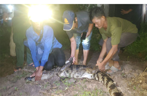 លោកបញ្ជាក់ថា បន្ទាប់ពីទទួលបានព័ត៌មាន លោកបានដឹកនាំមន្ត្រីជំនាញបរិស្ថាន និងអាជ្ញាធរមូលដ្ឋាន ចុះ ទៅដល់ទីតាំងខាងលើ ដោយឃើញថាក្នុងស្ថានភាពនោះ មានកូនស្រះតូចមួយ ដុះស្មៅ ហើយមានព្រៃ និង ត្រីផងនោះ លោកក៏បានជួលអេស្កាវ៉ាទ័រតូច មួយគ្រឿង កាយយកស្មៅ និងព្រៃចេញឱ្យអស់ ដើម្បីស្រួល មើល ឃើញសត្វក្រពើ។ ក្រោយពីកាយអស់ ហើយមន្ត្រីជំនាញបរិស្ថាន និងអាជ្ញាធរមូលដ្ឋាន បានយកឈើមកសង្កត់ និងយកខ្សែទាក់មាត់ក្រពើជាប់ រួចនាំគ្នាចងមាត់និងដៃជើង កន្ទុយ យកមកប្រគល់ឱ្យមន្ត្រីបរិស្ថាន យកទៅ លែងនៅកន្លែងមានសុវត្ថិភាព ដើម្បីចៀសវាងមានហានិភ័យកើតឡើងទៅថ្ងៃក្រោយ៕