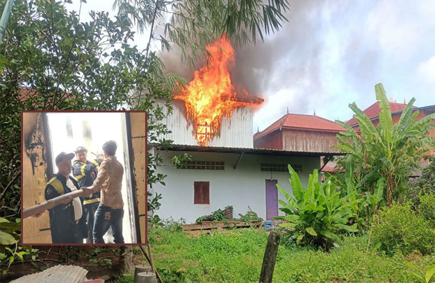 ខេត្តត្បូងឃ្មុំ ៖ ក្រុមគ្រួសារជាអាជីវករមួយ បានរៀបចំពិធីសែនក្បាលទឹក ដោយរៀបចំបាយទឹក ម្ហូបអាហារ នំណីរួចរាល់ ក៏នាំគ្នាអុជធូបបន់ស្រន់តាមទម្លាប់ បន្ទាប់មកក៏នាំគ្នា២នាក់ប្តីប្រពន្ធ ចេញទៅលក់ដូរអស់ទៅ ដោយទុកឱ្យកូនប្រុសអាយុ១៣ឆ្នាំម្នាក់ នៅផ្ទះ ចាំមើលភ្លើងធូប លុះកូនប្រុសភ្លេចខ្លួន ក៏កើតមានអគ្គិភ័យ ឆាបឆេះផ្ទះអស់ទាំងស្រុង។