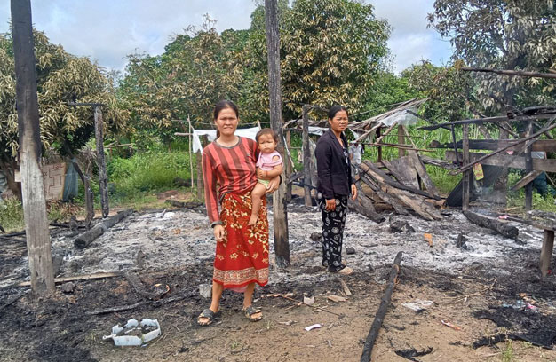 ខេត្តឧត្តរមានជ័យ ៖ ក្រុមគ្រួសារមួយ ហេតុតែមានជីវភាពទីទ័លក្រ ខ្វះមុខខ្វះក្រោយ ទើបនាំគ្នាទាំងគ្រួសារ (ឪពុកម្តាយកូន) ចេញទៅដើរស៊ីឈ្នួលគេនៅស្រុកឆ្ងាយ ដោយចាក់សោផ្ទះចោល លុះពេលត្រឡប់មកវិញ ស្រាប់តែភ្លើងបានឆេះផ្ទះខ្ទេច សល់តែផេះផង់។