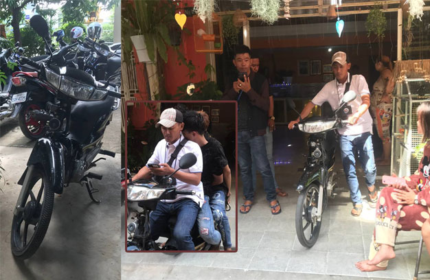 ភ្នំពេញ ៖ គូស្នេហ៍មួយគូ បានដឹកគ្នាចូលទៅក្នុងផ្ទះសំណាក់ ១កន្លែង ស្រាប់តែត្រូវជនសង្ស័យ២នាក់លួច ម៉ូតូជិះចេញទៅបាត់ លុះក្រោយមកត្រូវសមត្ថកិច្ចស្រាវជ្រាវ តាមចាប់ខ្លួនជនសង្ស័យទាំង២នាក់បាន នៅ ចំណុចផ្ទះសំណាក់១កន្លែងផ្សងេទៀត រួចនាំយកមកចាត់ការតាមច្បាប់។