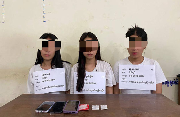 ខេត្តបាត់ដំបង ៖ នារីរូបស្រស់ ចំនួន៣នាក់ បានលង់ខ្លួនប្រើប្រាស់ថ្នាំញៀន ជាប្រចាំ លុះក្រោយពីទិញ ថ្នាំញៀនយកមកប្រើប្រាស់ ត្រូវសមត្ថកិច្ចចុះបង្ក្រាបជាក់ស្តែង ឃាត់ខ្លួនទាំង៣នាក់ នាំយកទៅចាត់ការ តាមច្បាប់។
