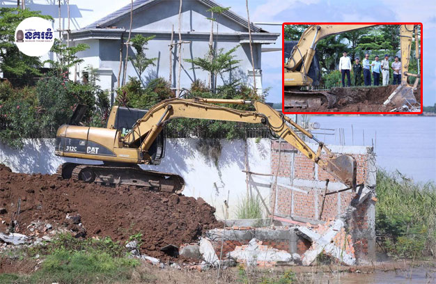 ខេត្តកណ្តាល ៖ អាជ្ញាធរ បានប្រើធម៌ក្តៅ ចុះវាយកម្ទេចរបង និងកាយដីចេញពីទីតាំងមួយកន្លែង ដែលបានសាងសង់និងចាក់ដីរំលោភព្រែក ខុសច្បាប់ បន្ទាប់ពីម្ចាស់ទីតាំងរឹងរូសនិងមិនអនុវត្តតាមសេចក្តីជូនដំណឹងរបស់អាជ្ញាធរ ដែលហាមឃាត់ជាច្រើនលើកច្រើនសា។