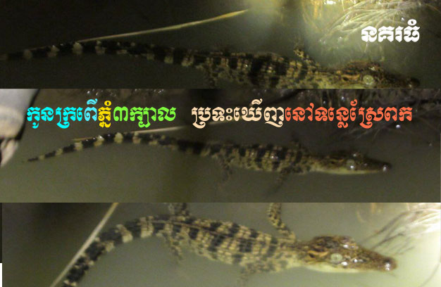 ខេត្តមណ្ឌលគិរី ៖ ក្រុមការងារត្រួតពិនិត្យនិងតាមដានរបស់អង្គការ WWF-កម្ពុជា បានប្រទះឃើញកូនក្រពើភ្នំ ៣ក្បាល នៅទន្លេស្រែពក ក្នុងអំឡុងពេលនៃដំណើរចុះល្បាត រយៈពេលប្រាំថ្ងៃ ទៅកាន់ទន្លេស្រែពក និងនៅតាមដងទន្លេ។