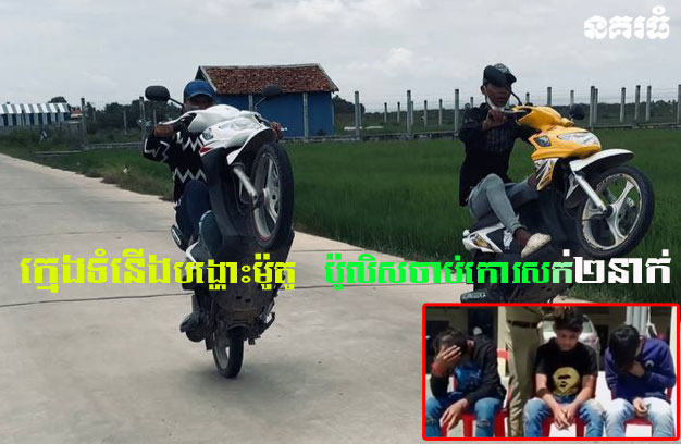 ក្មេងទំនើងបង្ហោះម៉ូតូ ប៉ូលិសចាប់កោរសក់២នាក់