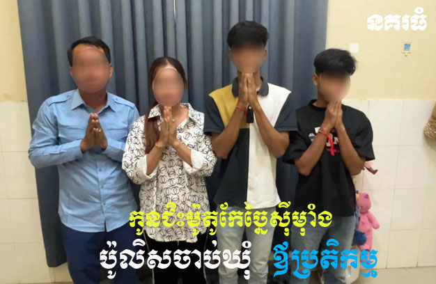 ភ្នំពេញ ៖ យុវជន ២នាក់ ជិះម៉ូតូកែច្នៃស៊ីម៉ាំង លាន់ឮសំឡេងខ្លាំង ត្រូវបានសមត្ថកិច្ចខណ្ឌព្រែកព្នៅ ស្ទាក់ ឃាត់ទាំងម៉ូតូនិងមនុស្ស នាំទៅសាកសួរនៅអធិការដ្ឋាននគរបាលខណ្ឌពេញ១យប់ ជាហេតុធ្វើឱ្យអាណាព្យាបាលយុវជនទាំង២នាក់ ផ្ទុះប្រតិកម្មរឿងឃុំកូនៗពួកគាត់ ១យប់ អត់បាយអត់ទឹក និងបង្ខំឱ្យធ្វើតេស្តទឹក នោម រកសារធាតុញៀន ដោយទទូចស្នើសុំនាយឧត្តមសេនីយ៍ ស ថេត អគ្គស្នងការនរគបាលជាតិ និងលោកឧត្តមសេនីយ៍ឯក ជួន ណារិន្ទ អគ្គស្នងការរងនគរបាលជាតិ និងជាស្នងការនគរបាលរាជធានីភ្នំពេញ មេត្តាជួយស្រាវជ្រាវ ដើម្បីផ្តល់យុត្តិធ៌មដល់កូនៗពួកគាត់ ដែលជាក្មេងស្លូតត្រង់។