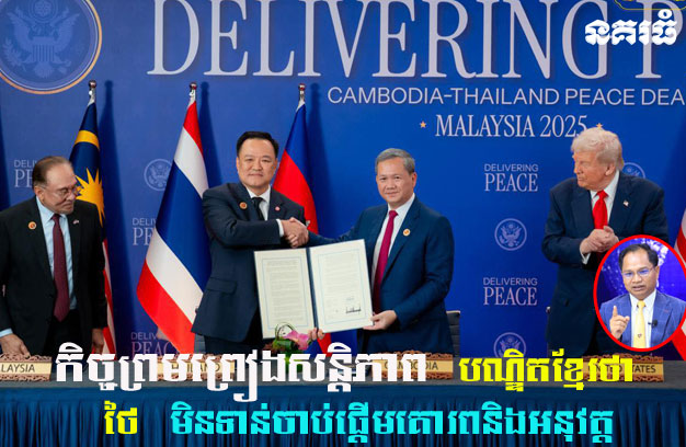 ភ្នំពេញ ៖ បណ្ឌិតខ្មែរ នៃរាជបណ្ឌិត្យសភាកម្ពុជា បានលើកឡើងថា កិច្ចព្រមព្រៀងសន្តិភាព ដែលបានចុះ ហត្ថលេខារវាងនាយករដ្ឋមន្រ្តី នៃព្រះរាជាណាចក្រកម្ពុជា សម្ដេចហ៊ុន ម៉ាណែត និងនាយករដ្ឋមន្រ្តី នៃព្រះ រាជាណាចក្រថៃ លោកអនុធិន ឆានវីរៈគូន ក្រោមការចូលរួមជាសាក្សីពីប្រធានាធិបតីសហរដ្ឋអាមេរិក លោកដូណាល់ ត្រាំ និងនាយករដ្ឋមន្រ្តីម៉ាឡេស៊ី ដែលជាប្រធានអាស៊ានប្ដូរវេន លោកអាន់វ៉ា អ៊ីប្រាហ៊ីម នៅទីក្រុងកូឡាឡាំពួរ ប្រទេសម៉ាឡេស៊ី កាលពីថ្ងៃទី២៦ ខែតុលា ឆ្នាំ២០២៥ មកដល់ថ្ងៃនេះ ថៃ មិនទាន់ចាប់ផ្តើមគោរពនិងអនុវត្តនោះទេ ដូចជា មិនទាន់ចាប់ផ្តើមចល័តយុទ្ធោបករណ៍ និងអាវុធធុនធ្ងន់ ចេញពីព្រំដែន និងទាន់មិនដោះលែងយោធាកម្ពុជា ១៨នាក់ ជាដើម ។