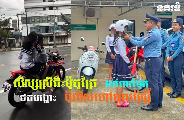 ខេត្តព្រះសីហនុ ៖ ក្មេងស្រីជាសិស្សសាលា ២នាក់ ជិះម៉ូតូធុនធំ ១គ្រឿង (ម៉ូតូត្រៃ) កម្លាំងដល់ទៅ 300CC ដោយមិនមានពាក់មួកសុវត្ថិភាព រួចថតបង្ហោះលើបណ្តាញសង្គម ត្រូវបានមហាជនផ្ទុះការរិះគន់យ៉ាងខ្លាំង និងត្រូវបានកម្លាំងសមត្ថកិច្ចចរាចរណ៍ កោះហៅឱ្យចូលខ្លួន ទាំង សាមីខ្លួនសិស្សស្រី តំណាងសាលា ទាំងអាណា ព្យាបាល ដើម្បីធ្វើការអប់រំណែនាំ។