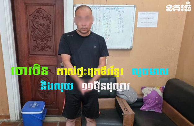 ភ្នំពេញ ៖ ជនជាតិចិនម្នាក់ បានធ្វើសកម្មភាពគាស់ផ្ទះវេជ្ជបណ្ឌិតម្នាក់ (ជាអ្នកជិតខាងគ្នា)  និងគាស់ទូដែក ប្រមូលយកមាសប្រាក់  សរុបជាទឹកប្រាក់ចំនួន ១១២ ៤៥០ដុល្លារ ហើយព្យាយាមរត់គេចខ្លួនបាន២ថ្ងៃ ត្រូវបានកម្លាំងសមត្ថកិច្ចជំនាញ ស្រាវជ្រាវឃាត់ខ្លួនបាន នាំយកមកចាត់ការតាមច្បាប់។