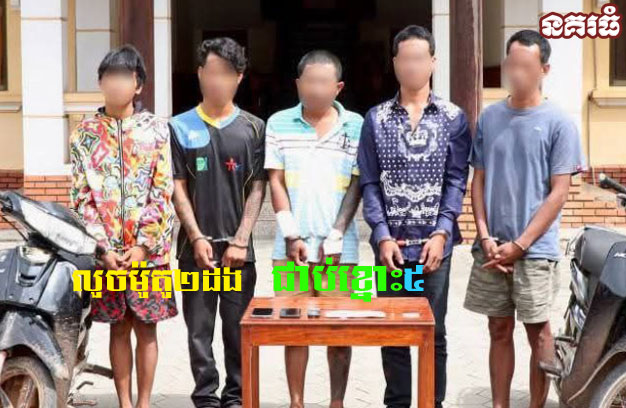 ខេត្តសៀមរាប ៖ ជនសង្ស័យ ១ក្រុម បានធ្វើសកម្មភាពលួចម៉ូតូ បានសម្រេចជាបន្តបន្ទាប់ចំនួន២លើក លុះក្រោយមកត្រូវបានកម្លាំងជំនាញអាវុធហត្ថស្រាវជ្រាវឃាត់ខ្លួនបាន សរុបចំនួន៥នាក់ នាំយកមកចាត់ការតាមច្បាប់។