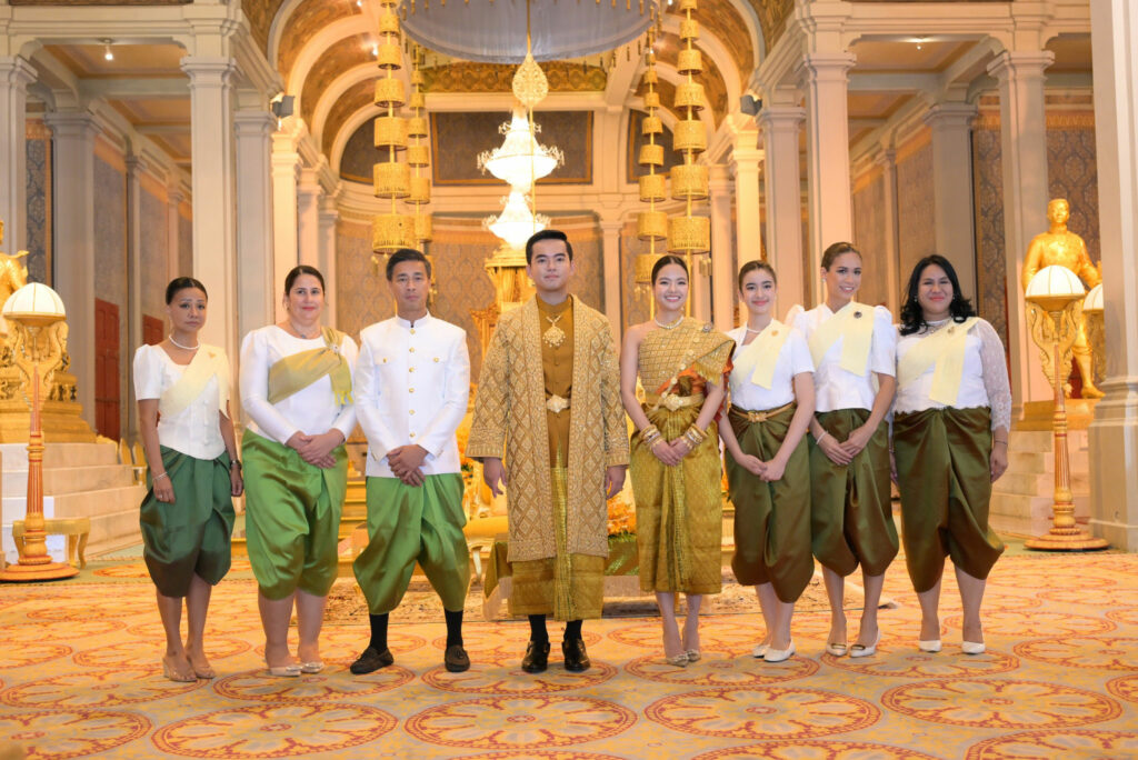 ជាទិដ្ឋភាពនៅក្នុងព្រះមង្គលការនោះ ទាំងញាតិវង្សានុវង្ស និងភ្ញៀវកិត្តិយសប្រុសស្រីដទៃ ទាំងខាងកូនកំលោះ-កូនក្រមុំ ត្រូវគ្រងឈុតក្បិនពណ៌ស៊ីលៀប ព្រមទាំងអាវប៉ាក់ ហើយបន្ថែមនូវពានាស្បៃ និងស្បែកជើងស និងខ្មៅ សម្រាប់បុរស។