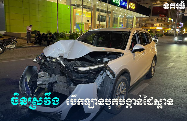 ភ្នំពេញ ៖ បុរសជនជាតិចិន ម្នាក់ ក្រោយពីផឹកស៊ីស្រវឹង បានបើករថយន្តទំនើប ១គ្រឿង ក្នុងល្បឿនលឿន មិនប្រយ័ត្ន ជ្រុលទៅបុកបង្កាន់ដៃស្ពានអាកាសផ្សារដីហុយ ពេញទំហឹង បណ្តាលឱ្យរថយន្តខ្ទេចមួយកំណាត់មុខ។ហេតុការណ៍គ្រោះថ្នាក់ចរាចរណ៍នេះ បានកើតឡើង កាលពីវេលាម៉ោង៧និង៣០នាទីយប់ ថ្ងៃទី១០ ខែធ្នូ ឆ្នាំ២០២៥ នៅត្រង់ចំណុចគល់ស្ពានអាកាសផ្សារដីហុយ ចុងខាងលិច ស្ថិតនៅលើផ្លូវសហព័ន្ធរុស្ស៊ី ក្នុងសង្កាត់អូរបែកក្អម ខណ្ឌសែនសុខ។