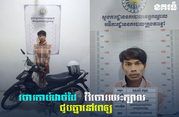 ខេត្តកណ្តាល ៖ យុវជនម្នាក់ ត្រឡប់មកពីផ្ទះបងប្អូន បែកកកង់ម៉ូតូតាមផ្លូវ ទើបចុះបណ្តើរ ស្រាប់តែលេចមុខជនសង្ស័យ ចំនួន៤នាក់ បានស្ទុះទាញដាវកាប់ជនរងគ្រោះ បំណងប្លន់ម៉ូតូ បណ្តាលឱ្យរងរបួសដៃ តែត្រូវជន រងគ្រោះតដៃ ប្រតាយប្រតប់ជាមួយជនសង្ស័យម្នាក់ និងទាញដុំថ្មសំពងជនសង្ស័យ បណ្តាលឱ្យរយះក្បាល និងធ្លាក់ចូលទឹក ទាំង២នាក់ ធ្វើឱ្យជនសង្ស័យភ័យ ក៏រត់គេចបាត់។ លុះជនរងគ្រោះទៅព្យាបាលនៅមន្ទីរពេទ្យ ស្រាប់តែជួបជនសង្ស័យ បានចូលទៅដេរមុខរបួសដែរ ក៏ចាប់ក្របួចជាប់ ប្រគល់ឱ្យសមត្ថកិច្ចតែម្តង ខណៈបក្ខពួកជនសង្ស័យ ៣នាក់ទៀត បានរត់គេចខ្លួនបាត់អស់។