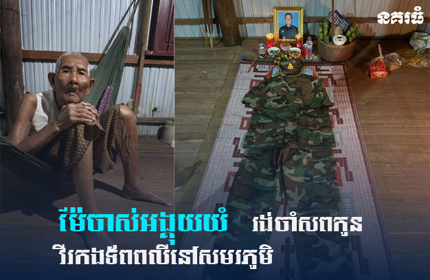 ខេត្តត្បូងឃ្មុំ ៖ ដោយសារតែទំហំចិត្តអាណិតស្រណោះ ស្រលាញ់កូន យ៉ាងធំធេង នៅពេលឮថាកូនប្រុសដែលជាវីរកងទ័ព បានពលីនៅសមរភូមិ ទិសប្រាសាទតាក្របី ក្នុងសង្រ្គាមជាមួយថៃ តាំងពីថ្ងៃទី១៧ ខែធ្នូ ឆ្នាំ២០២៥ តែមិនទាន់អាចយកសពបានចេញពីកន្លែងប្រយុទ្ធនោះ បានធ្វើស្រី្តជាម្ដាយចាស់ ដែលមានវ័យជិត១០០ឆ្នាំទៅហើយ អង្គុយយំរាល់ថ្ងៃ រង់ចាំសពកូន បញ្ជូនត្រលប់មកស្រុកកំណើតវិញ ។ ប៉ុន្តែការទន្ទឹងរង់ចាំរបស់ម៉ែចាស់រូបនេះ ប្រហែលគ្មានឱកាសបានជួបសពកូនទេ ទើបក្រុមគ្រួសារ សម្រេចយកឯកសណ្ឋានកងទ័ព តំណាងឲ្យសពវីរកងទ័ពពលី រៀបចំធ្វើបុណ្យឈាបនកិច្ច តាមប្រពៃណីព្រះពុទ្ធសាសនា កាលពីថ្ងៃទី២២ ខែធ្នូ ឆ្នាំ២០២៥ ។