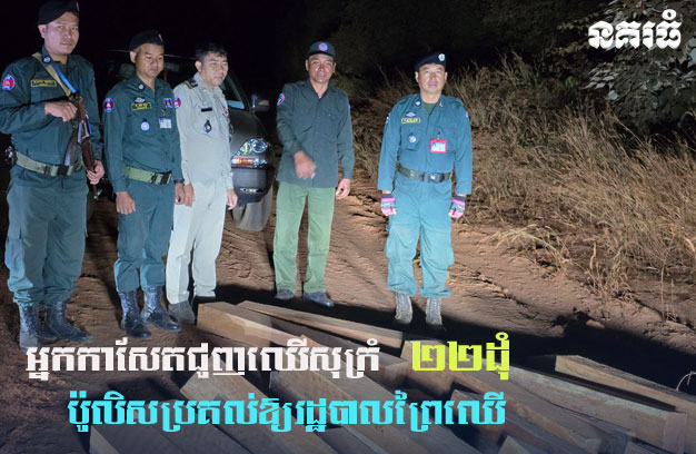 អ្នកកាសែតជួញឈើសុក្រំ ២២ដុំ ប៉ូលិសប្រគល់ឱ្យរដ្ឋបាលព្រៃឈើ