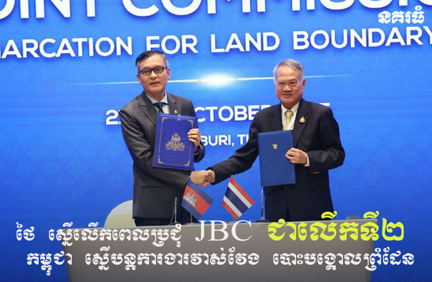 ក្នុងអំឡុងពេលរង់ចាំកិច្ចប្រជុំពិសេសរបស់គណៈកម្មការ JBC នាពេលខាងមុខ និងដើម្បីពន្លឿនការអនុវត្តការងារលើដីជាក់ស្តែង ដែលបានឯកភាពគ្នា នាពេលកន្លងមក ស្របតាមខ្លឹមសារនៃកំណត់ហេតុកិច្ចប្រជុំពិសេសរបស់គណៈកម្មការ JBC កម្ពុជា-ថៃ ចុះថ្ងៃទី២២ ខែតុលា ឆ្នាំ២០២៥ នៅខេត្តចន្ទបុរី ភាគីកម្ពុជា បានស្នើសាជាថ្មី ទៅភាគីថៃ តាមរយៈកំណត់ទូតចុះថ្ងៃទី១៣ ខែមករា ឆ្នាំ២០២៦ ដែលមានខ្លឹមសារ ដូចខាងក្រោម ៖