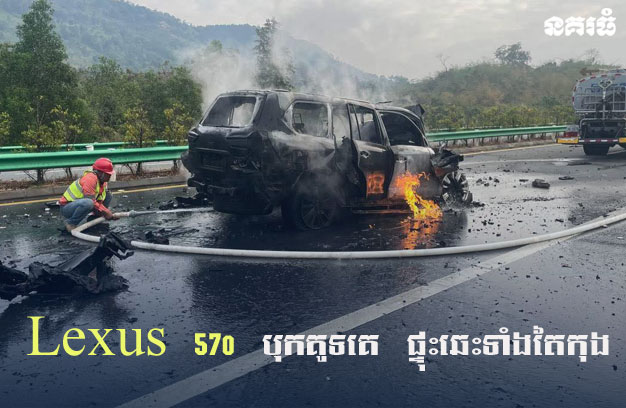 LEXUS 570 បុកគូទគេ ផ្ទុះឆេះទាំងតៃកុង