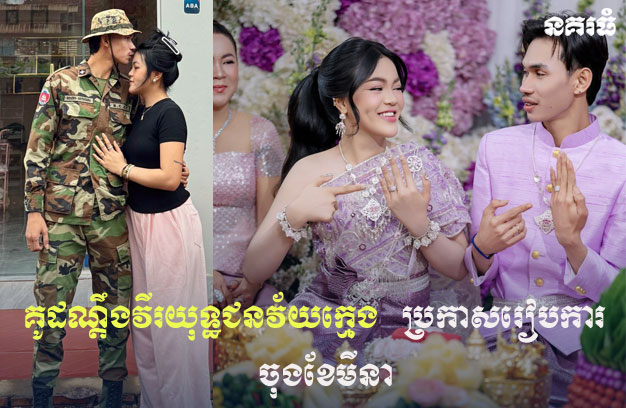ខេត្តកំពង់ចាម ៖ គូដណ្ដឹងវីរយុទ្ធជនវ័យក្មេង ដែលល្បីល្បាញតាមបណ្តាញសង្គម ក្រោយពីបានភ្ជាប់ពាក្យក្នុងភ្លើងសង្គ្រាមនោះ បានប្រកាសរៀបការ នៅចុងខែមីនា ឆ្នាំ២០២៦ ខាងមុខនេះ ដោយនាងថែមទាំងបានផ្ញើសារទៅអនាគតស្វាមី ដែលកំពុងឈរជើងនៅសមរភូមិ ត្រៀមតទល់នឹងសត្រូវបរទេសឈ្លានពានថា នាងរង់ចាំប្រុសកំពូលស្នេហ៍វិលត្រលប់មកវិញ ដោយសុវត្ថិភាព ដើម្បីក្រាបសំពះផ្ទឹម ញញឹមទទួលផ្កាស្លាជាមួយគ្នាដូចបំណង តាមពេលាកំណត់ ។