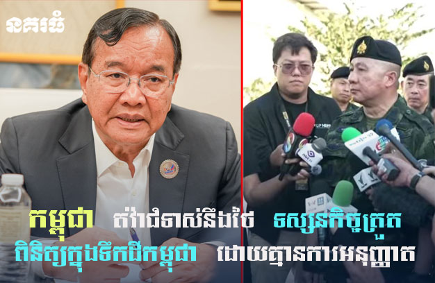 ភ្នំពេញ ៖ រាជរដ្ឋាភិបាលកម្ពុជា តាមរយៈក្រសួងការបរទេសនិងសហប្រតិបត្តិការអន្តរជាតិ (Ministry of Foreign Affairs and International Cooperation) បានចេញសេចក្ដីប្រកាសព័ត៌មាន ស្ដីពី “កម្ពុជា តវ៉ាជំទាស់នឹងទស្សនកិច្ចត្រួតពិនិត្យទីតាំងដោយគ្មានការអនុញ្ញាត ដឹកនាំដោយប្រធានចារកម្មកងទ័ពថៃ នៅក្នុងទឹកដីកម្ពុជា” ដោយធ្វើការតវ៉ាយ៉ាងខ្លាំង ជាផ្លូវការ ប្រឆាំងនឹងទស្សនកិច្ចត្រួតពិនិត្យទីតាំងដោយគ្មានការអនុ ញ្ញាត របស់អនុព័ន្ធយោធាបរទេសមួយក្រុម និងមន្ត្រីអនុវត្តច្បាប់ ដែលដឹកនាំដោយប្រធានចារកម្មកងទ័ពថៃ នៅសណ្ឋាគារ ពីរកន្លែង ស្ថិតនៅក្នុងស្រុកអូរស្មាច់ ខេត្តឧត្តរមានជ័យ នៃប្រទេសកម្ពុជា កាលពីថ្ងៃទី២ ខែកុម្ភៈ ឆ្នាំ ២០២៦។ កម្ពុជា បដិសេធ និងជំទាស់យ៉ាងដាច់អហង្ការ ចំពោះប្រតិបត្តិការដែលធ្វើឡើងដោយកងកម្លាំងយោធាថៃ រួមទាំងការអនុវត្តអធិបតេយ្យរបស់ថៃ ដោយខុសច្បាប់ តាមរយៈការរៀបចំទស្សនកិច្ចដូចដែលបានរៀបរាប់ខាងលើ ដែលជាការប៉ុនប៉ងធ្វើឱ្យស្របច្បាប់ នូវការកាន់កាប់របស់ខ្លួន លើទឹកដីអធិបតេយ្យរបស់កម្ពុជា និងជាការរំលោភលើធម្មនុញ្ញអង្គការសហប្រជាជាតិ និងធម្មនុញ្ញអាស៊ាន។