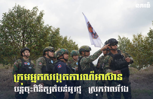 នៅព្រឹកថ្ងៃសុក្រ ៤រោច ខែមាឃ ឆ្នាំម្សាញ់ សប្តស័ក ព.ស ២៥៦៩ ត្រូវនឹងថ្ងៃទី៦ ខែកុម្ភៈ ឆ្នាំ២០២៦លោកស្រីឧត្តមសេនីយ៍ឯក ម៉ាលី សុជាតា អ្នកនាំពាក្យក្រសួងការពារជាតិ នៃព្រះរាជាណាចក្រកម្ពុជា ជម្រាបជូនសា ធារណជន អ្នកសារព័ត៌មានជាតិ និងអន្តរជាតិ មេត្តាជ្រាបថា ៖ នៅព្រឹកថ្ងៃសុក្រ ទី៦ ខែកុម្ភៈ ឆ្នាំ២០២៦ វេលាម៉ោង ១០:០៥នាទី ក្រុមសម្របសម្រួល (CLG) នៃព្រះរាជាណាចក្រកម្ពុជា បានសម្របសម្រួលជូនដល់ក្រុមអ្នកសង្កេតការណ៍អាស៊ាន (AOT) ចុះសង្កេតការណ៍ ផ្ទៀងផ្ទាត់ និងរាយការណ៍អំពីស្ថានភាពព្រំដែននៅតំបន់អូរថ្ម ស្រុកវាលវែង ខេត្តពោធិ៍សាត់ ក្រោយបទឈប់បាញ់ចូលជាធរមាន។