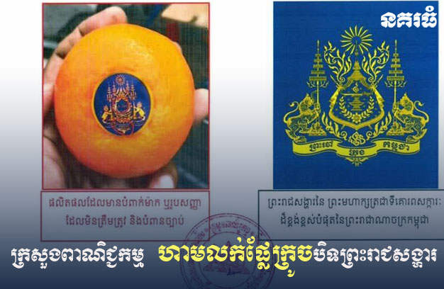 ភ្នំពេញ ៖ អគ្គនាយកដ្ឋានកិច្ចការពារអ្នកប្រើប្រាស់ និងការប្រកួតប្រជែង ក.ប.ប នៃក្រសួងពាណិជ្ជកម្ម បានប្រាប់ដល់ដល់អាជីវករ ទាំងអ្នកនាំចូល និងអ្នកលក់បន្ត ត្រូវបញ្ឈប់និងរក្សាទុកជាបណ្តោះអាសន្ន ចំពោះផ្លែក្រូច ដែលមានសញ្ញាជាតិ ឬព្រះរាជសង្ហារ នៃព្រះរាជាណាចក្រកម្ពុជា។