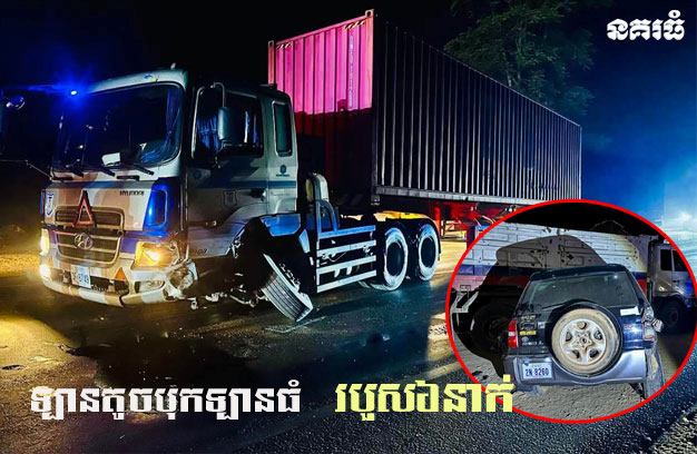 ខេត្តកំពង់ស្ពឺ ៖ រថយន្តធុនតូច ១គ្រឿង បើកបរនិងមានអ្នករួមដំណើរសរុប ចំនួន៦នាក់ បានជួបគ្រោះថ្នាក់ចរាចរណ៍ ជ្រុលទៅបុកជាមួយរថយន្តធុនធំសណ្តោងទូកុងតឺន័រ ១គ្រឿង ដែលកំពុងបើកបញ្ច្រាសទិសគ្នា ពេញទំហឹង បណ្តាលឱ្យមនុស្សចំនួន ៦នាក់ ដែលជិះក្នុងរថយន្តតូច រងរបួសធ្ងន់-ស្រាល ខណៈអ្នកបើកបររថយន្តកុងតឺន័រ បានចុះរត់គេចខ្លួនបាត់។
