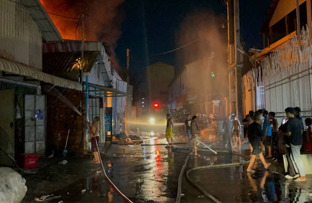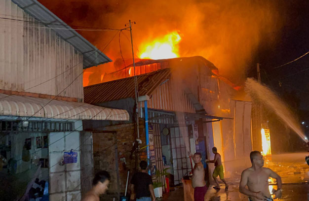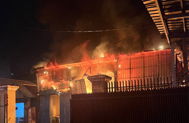 ភ្នំពេញ ៖ ឃ្លាំងស្តុកអេតចាយ មួយកន្លែង ត្រូវបានអគ្គិភ័យឆាបឆេះយ៉ាងសន្ធោសន្ធៅ ទាំងកណ្តាលយប់ បណ្តាលឱ្យខូចខាតស្ទើរទាំងស្រុង បង្កការភ្ញាក់ផ្អើលដល់សមត្ថកិច្ច បញ្ចេញរថយន្តពន្លត់អគ្គិភ័យ ជាច្រើនគ្រឿង ចុះជួយអន្តរាគមន៍បាញ់ទឹកពន្លត់។