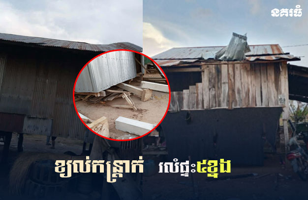 ខេត្តបាត់ដំបងៈ លំនៅដ្ឋានរបស់ប្រជាពលរដ្ឋចំនួន៥ខ្នង បានរងការខូចខាតយ៉ាងដំណំ ក្រោយពីទទួលរងបាតុភូតគ្រោះធម្មជាតិ ខ្យល់កន្ត្រាក់ ទាំងគ្មានភ្លៀងសូម្បី១តំណក់ តែសំណាងល្អ មិនបង្កគ្រោះថ្នាក់ដល់មនុស្សណាម្នាក់ទេ។