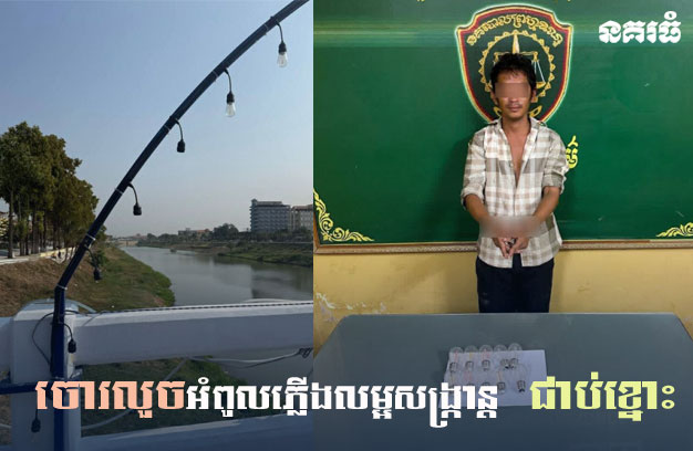ចោរលួចអំពូលភ្លើងលម្អសង្ក្រាន្ត ជាប់ខ្នោះ