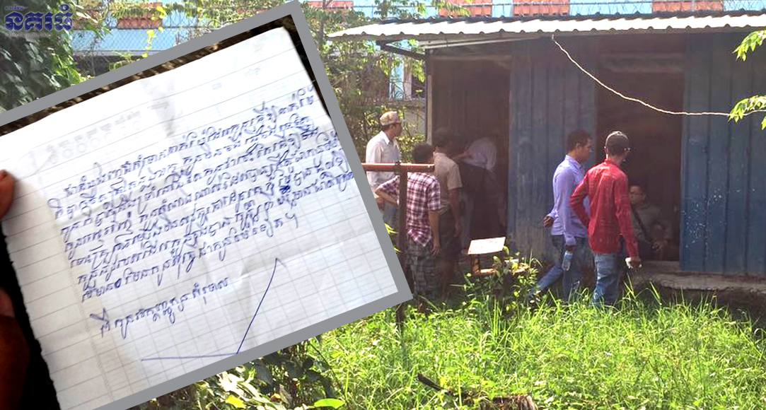 ភ្នំពេញ ៖ យុវជនម្នាក់បានរំអុកម្តាយរបស់ខ្លួនឱ្យចូលស្តីដណ្តឹងកូនក្រមុំគេម្នាក់ មកធ្វើជាប្រពន្ធ តែម្តាយមើលឃើញថាកូនប្រុសមិនទាន់មានការងារជាប់លាប់ត្រឹមត្រូវ អាចមានលទ្ធភាពចិញ្ចឹមកូនស្រីគេរស់ ណាមួយកូនស្រីគេមិនទាន់គ្រប់អាយុរៀបការផង ក៏ប្រាប់ឱ្យកូនប្រុសទ្រាំចាំបន្តិចសិន បែរជាកូនប្រុសខូចចិត្ត ដើរផឹកស៊ីស្រវឹង រួចក៏សរសេរលិខិតបណ្តាំមួយសន្លឹកទុកឱ្យម្តាយ រួចដាច់ចិត្តចងកសម្លាប់ខ្លួននៅក្នុងបន្ទប់ទឹក។