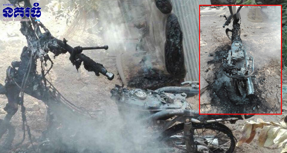 ខេត្តបាត់ដំបង ៖ បុរសប្រមឹកម្នាក់ ក្រោយពីផឹកស្រាស្រវឹងធ្លាក់ភ្នែក ក៏មិនទារយកសោម៉ូតូពីកូនប្រុស បំណងជិះចេញទៅក្រៅ តែកូនប្រុសមិនព្រមឱ្យ​ ព្រោះឃើញឪពុកស្រវឹងជោកជាំណាស់ទៅហើយ ខ្លាចកើតមានគ្រោះថ្នាក់ជាយថាហេតុ ស្រាប់តែឪពុកចិត្តកំណាចផ្ទុះកំហឹង ក៏ដុតម៉ូតូចោល បណ្តាលឱ្យឆេះម៉ត់ សល់តែគ្រោងឆ្អឹងដែក។
