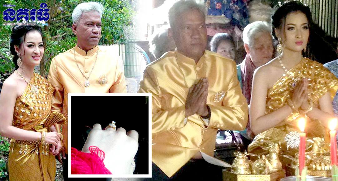ខេត្តកំពង់ឆ្នាំង ៖ គូស្នេហ៍ថ្មោងថ្មីមួយគូនេះ បានធ្វើឱ្យកើតមានការភ្ញាក់ផ្អើលពេញក្នុងបណ្តាញសង្គមហ្វេសប៊ុក ក៏ព្រោះតែភាគីកូនកំលោះដែលមានវ័យជាង៥០ឆ្នាំប្លាយ និងមានសក់ស្កូវសព្រោង មានភ័ព្វវាសនាស្ទូចយកបេះដូងភរិយាដែលមានវ័យក្មេងរូបស្រស់ រហូតបានដឹកដៃគ្នាសំពះផ្ទឹមរៀបការទទួលយកគ្នាជាគូអនាគត ដោយសន្យាថែរក្សាចំណងស្នេហ៍មួយនេះឱ្យមានភាពផ្អែមល្ហែមរហូតតទៅ។
