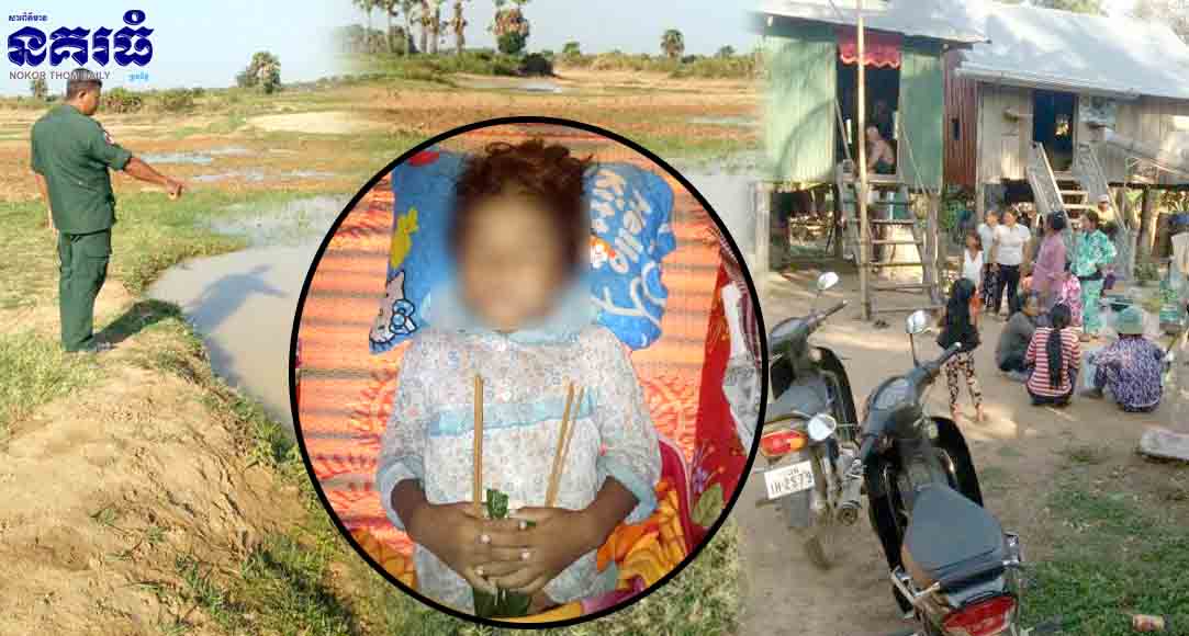 ខេត្តកំពង់ធំ ៖ ក្មេងស្រីអាយុ៧ឆ្នាំម្នាក់ បានដើរចុះទៅលេងទឹកស្រះរណ្តៅអាអិចតែម្នាក់ឯង បណ្តាលឱ្យលង់ទឹកស្លាប់យ៉ាងអាណោចអាធ័ម ដោយគ្មានអ្នកដឹង បង្កឱ្យមានការភ្ញាក់ផ្អើលឡើង កាលពីវេលាម៉ោង៤រសៀល ថ្ងៃទី០៨ ខែមេសា ឆ្នាំ២០១៨ នៅចំណុចស្រះទឹកខាងជើង ភូមិចុងដា ឃុំត្បូងក្រពើ ស្រុកសន្ទុក។