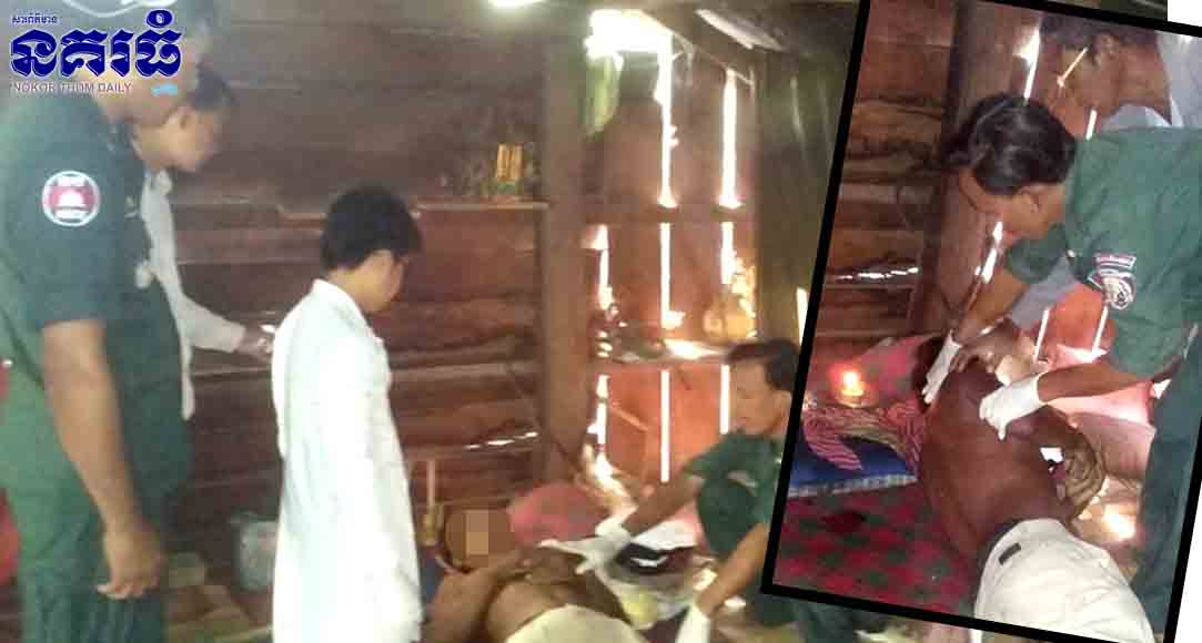 ខេត្តកំពង់ធំ ៖ បុរសវ័យចំណាស់ម្នាក់បានជិះកង់ទៅមើលគេរាំធុងបាស់នៅក្នុងភូមិ លុះដល់យប់ជ្រៅបន្តិចត្រឡប់មកវិញ ចូលសម្រាន្តនៅក្នុងផ្ទះ រួចក៏ដកចង្កាមាន់ស្លាប់យ៉ាងអាណោចអាធ័ម កាលពីវេលាម៉ោង១១និង៣០នាទីយប់ ថ្ងៃទី០៩ ខែមេសា ឆ្នាំ២០១៨ នៅចំណុចផ្ទះរបស់ជនរងគ្រោះ ស្ថិតក្នុងភូមិប្រាសាទ ឃុំព្រះដំរី ស្រុកស្ទោង។