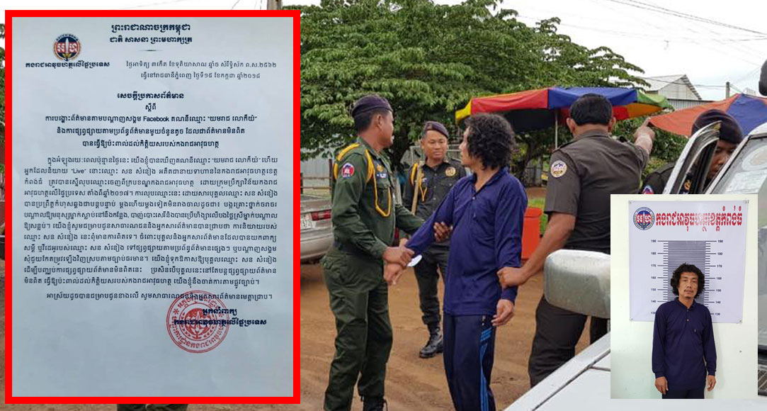 ខ្ញុំបាទ ឧត្តមសេនីយ៍ត្រី អេង ហ៊ី អ្នកនាំពាក្យកងរាជអាវុធហត្ថលើផ្ទៃប្រទេស សូមអនុញ្ញាតជម្រាបជូនសាធារណជនបានជ្រាបថា បុគ្គលឈ្មោះ សន សំនៀង នេះ ត្រូវបានឃាត់ខ្លួននៅល្ងាចថ្ងៃទី១៥ ខែកក្កដា ឆ្នាំ២០១៨ ដោយកងរាជអាវុធហត្ថខេត្តកំពង់ធំ មានការដឹកនាំនិងសម្របសម្រួលដោយតំណាងអយ្យការអមសាលាដំបូងខេត្តកំពង់ធំ។ ខណៈនេះ មន្ត្រីនគរបាលយុត្តិធម៌នៃកងរាជអាវុធហត្ថខេត្តកំពង់ធំ កំពុងធ្វើការស្តាប់ចម្លើយនិងបន្តនីតិវិធី។
