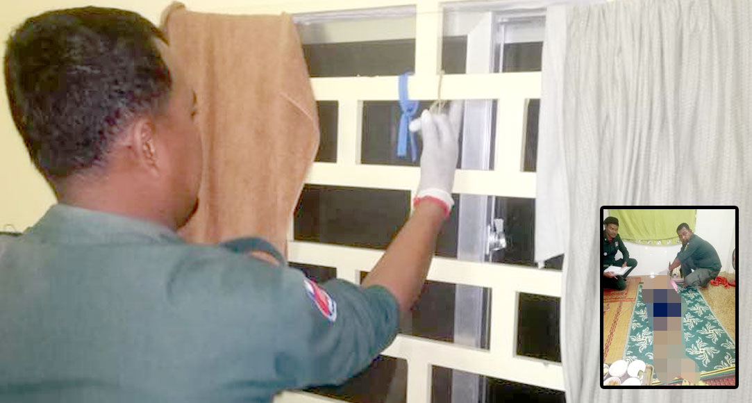 ស្ត្រីជាប្រពន្ធជនរងគ្រោះ បន្តថា នៅថ្ងៃកើតហេតុ ប្តីរបស់គាត់ (ជនរងគ្រោះ) ចេះតែដើរទៅមុខទៅក្រោយ និងចេញចូលផ្ទះញឹកញាប់ ខុសសព្វដង។ លុះដល់វេលាម៉ោងប្រមាណ៤និង២០នាទីរសៀល ដោយមិនឃើញប្តី ទើបគាត់ជាប្រពន្ធ បានដើរទៅរកមើលប្តីនៅផ្ទះ លុះបើកទ្វារបន្ទប់ ស្រាប់តែឃើញប្តីរបស់គាត់ ចងកជាមួយខ្សែភ្លើងជាប់នឹងចំរឹងបង្អួចក្នុងបន្ទប់ស្លាប់បាត់ទៅហើយ រួចក៏បានរាយការណ៍ប្រាប់សមត្ថកិច្ច ប៉ុស្តិ៍នគរបាលរដ្ឋបាលគគីរ ឱ្យចុះមកពិនិត្យ។