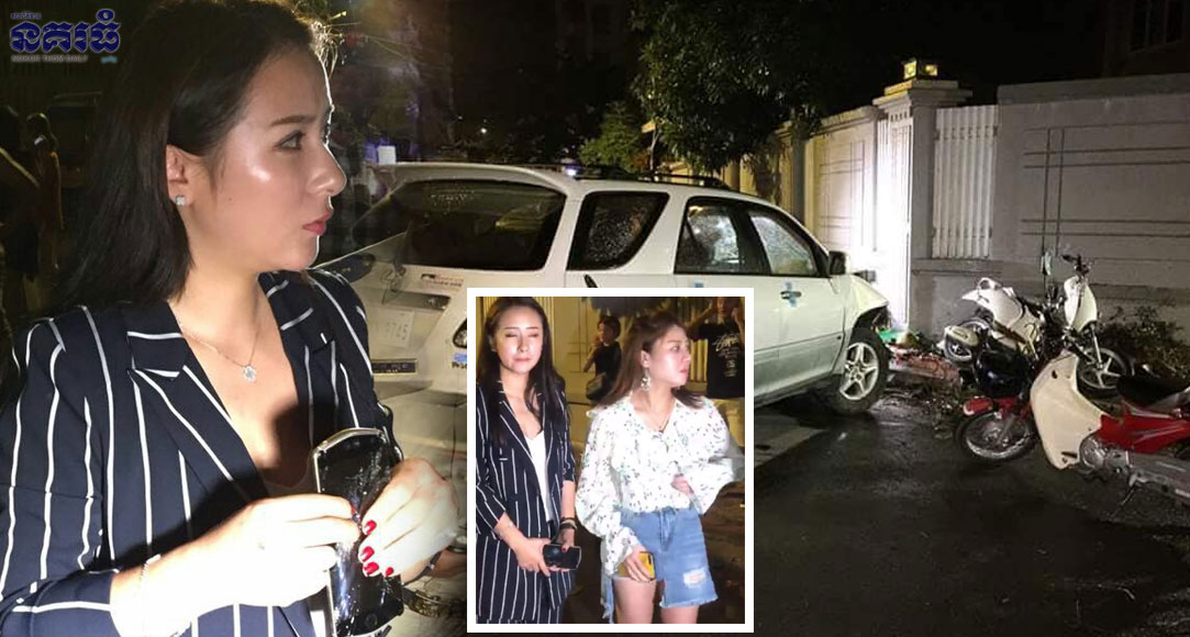 ភ្នំពេញ ៖ នារីរូបស្រស់ជាជនជាតិចិន ចំនួន២នាក់ បានអះអាងថា ត្រូវជនសង្ស័យចំនួន២នាក់ ធ្វើសកម្មភាពឆក់ទូរស័ព្ទដៃរបស់នាង ក៏ត្រូវនាងបើករថយន្តប្រដេញតាម រួចក៏បំបុកផ្ទប់នឹងជញ្ជាំងផ្ទះប្រជាពលរដ្ឋ ធ្វើឱ្យជនសង្ស័យទាំង២នាក់ ដេកដួលស្តូកស្តឹងសល់តែដង្ហើមចង្រិត បង្កឱ្យមានការភ្ញាក់ផ្អើលឡើង កាលពីវេលាម៉ោង១១យប់ ថ្ងៃទី១២ ខែសីហា ឆ្នាំ២០១៨ នៅចំណុចផ្លូវលេខ៤៥៤ កែងនឹងផ្លូវលេខ១២៣ ស្ថិតក្នុងសង្កាត់ទួលទំពូងទី២ ខណ្ឌចំការមន។