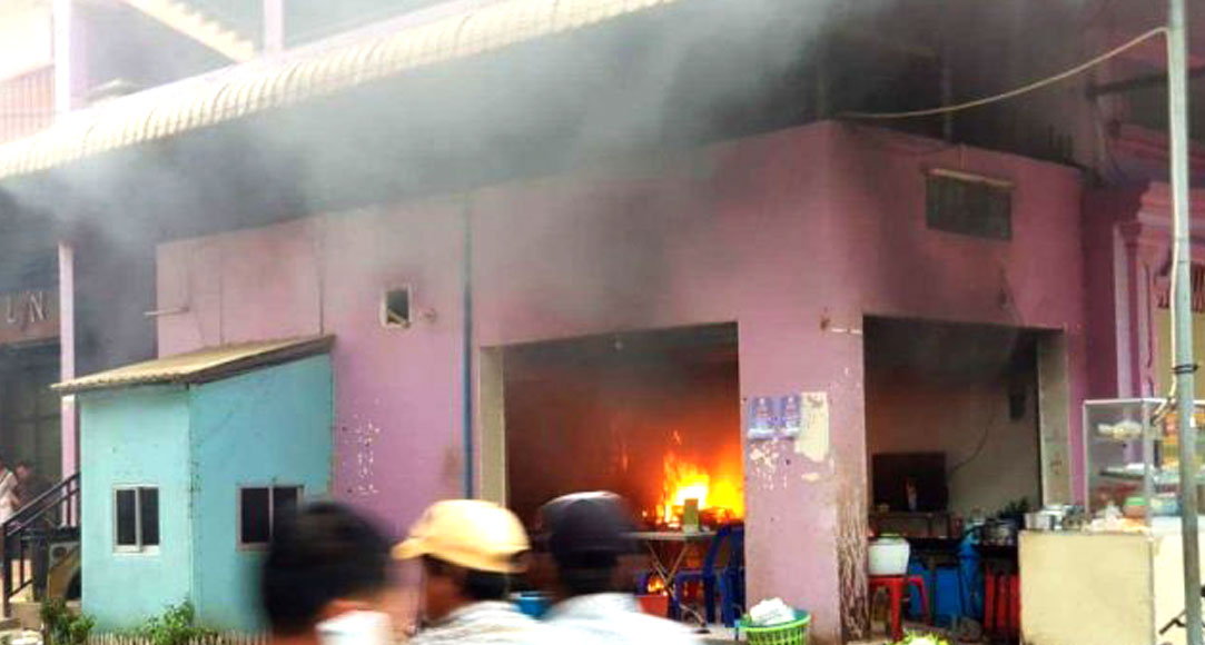 តាមប្រភពពីកន្លែងកើតហេតុ បានឱ្យដឹងថា នៅមុនពេលកើតហេតុ ខណៈដែលមានភ្ញៀវជាច្រើនបានចូលហូបចុកបាយម្ហូបនៅក្នុងតូបលក់បាយខាងលើសុខៗ ក៏ស្រាប់តែកើតមានហេតុការណ៍ទុស្សេខ្សែភ្លើង បង្កឱ្យក្លាយជាអគ្គិភ័យឆាបឆេះឡើងយ៉ាងសន្ធោសន្ធៅ ធ្វើឱ្យទាំងភ្ញៀវ ទាំងអ្នកលក់ ភ័យស្លន់ស្លោ នាំគ្នារត់គេចចេញមកក្រៅហាងព្រោងព្រាត និងបានរាយការណ៍សុំអន្តរាគមន៍ពីសមត្ថកិច្ចភ្លាមៗ។