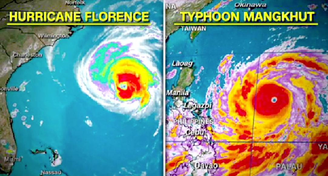 ព្យុះ Mangkhut បានចាប់ផ្តើមវាយប្រហារផ្នែកខ្លះៗនៃភាគខាងជើង ប្រទេសហ៊្វីលីពីន ហើយកំពុងធ្វើដំណើរឆ្ពោះមកទិសខាងកើត ដែលអាចធ្វើឱ្យប៉ះពាល់ដល់ប្រទេសចិន។ ព្យុះនេះមានល្បឿន240គីឡូម៉ែត្រ ក្នុង១ម៉ោង មានកម្លាំងខ្លាំងជាងព្យុះ Hurricane Florence ដែលកំពុងវាយប្រហារនៅភាគ ខាងកើតសហរដ្ឋអាមេរិក។