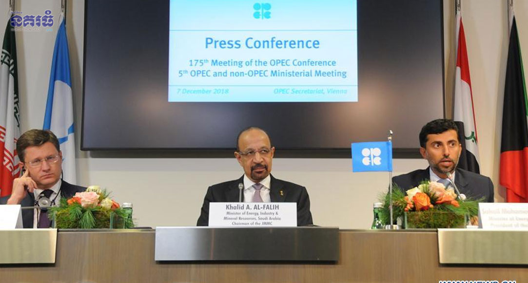 អង្គការប្រទេសនាំប្រេងចេញ ដែលហៅកាត់ថា OPEC និងបណ្តាប្រទេសផលិតប្រេង ដែលមិនមែនជាសមាជិករបស់អង្គការ OPEC កាលពីថ្ងៃសុក្រ ទី០៧ ខែធ្នូ ឆ្នាំ២០១៨ បានយល់ព្រមគ្នា កាត់បន្ថយការផលិតប្រេងឆៅ ឱ្យមកនៅត្រឹម១,២លានបារ៉ែល ក្នុង១ថ្ងៃ ដែលនឹងចាប់អនុវត្តន៍ ពីខែមករា ឆ្នាំ២០១៩ សម្រាប់រយៈពេលសាកល្បង៦ខែដំបូង។ នេះបើយោងតាមប្រភពព័ត៌មាន Xinhua ចេញផ្សាយកាលពីថ្ងៃសៅរ៍ ទី០៨ ខែធ្នូ ឆ្នាំ២០១៨។